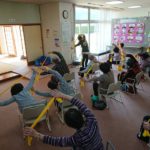 庄東センターにて毎週火曜日、1時間脳トレや転倒予防体操、ボールやチューブを使った健康体操のレッスンを行っています!