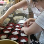 続いては、チェーのお団子作り!こちらは、子供たちの得意の丸いお団子をみんなで作りゆで、あんこをトッピングしたお皿に冷たく冷やしたココナッツミルクとかぼちゃの入ったスープをかけて出来上がり!